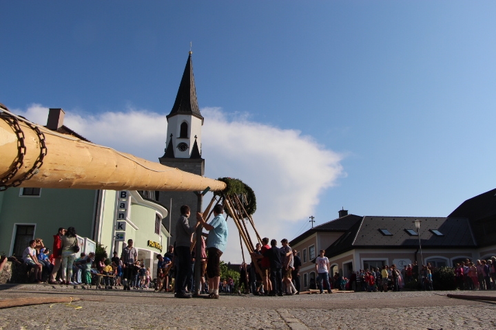 Bereits seit mehreren Jahren unterstützt die Feuerwehr Ohlsdorf die katholische Jugend der Gemeinde beim aufstellen des Maibaumes im Ohlsdorfer Zentrum.