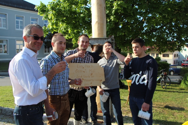 Der Organisator des Maibaums, Maxwald Johannes bedankte sich bei den Baumspendern, den „Mosers“ herzlichst. Er überreichte ihnen einen Keramik- Krug. Ohlsdorfs Politik, führend durch Bgmin. Christine Eisner und Vize Bgm. Johann Halbmaier zeigte sich sehr erfreut über die Brauchtumspflege, die in Ohlsdorf Jahr für Jahr weitergeführt wird. Für alle Helfer gab es einen Gutschein für ein Essen und ein Getränk.