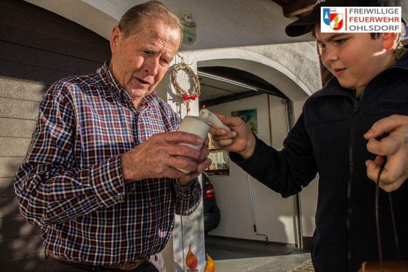 Danach ging es mit den Feuerwehrfahrzeugen quer durch die Gemeinde um das Licht an unsere Feuerwehrkameraden und an die Bevölkerung zu verteilen. Im Ohlsdorfer Gerätehaus konnten Gemeindebürger ebenso dieses abholen. Bürgermeisterin Christine Eisner, Vize-Bürgermeisterin Ines Mirlacher und Vize- Bürgermeister Alexander Ortner erhielten ebenfalls das Licht von der Jugendgruppe wie unsere Fahnenpatinen.