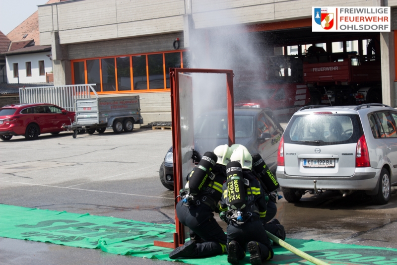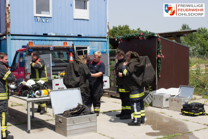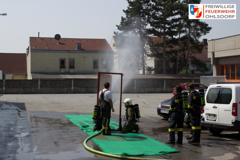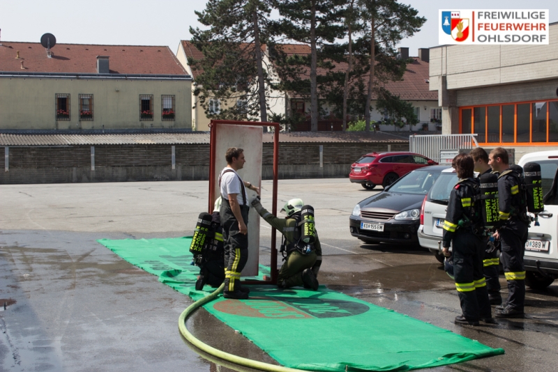 Knapp 30 Grad Außentemperaturen am Samstag, 25. Juni 2016 brachte unseren Atemschutztrupp nicht zum Schwitzen. Aber dafür die knapp über 300 Grad der Übungsanlage der Firma Feurex in Stockerau.
