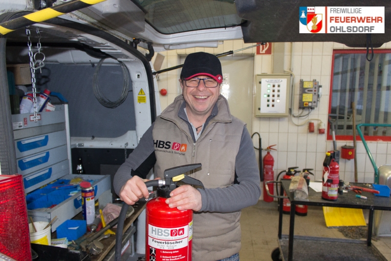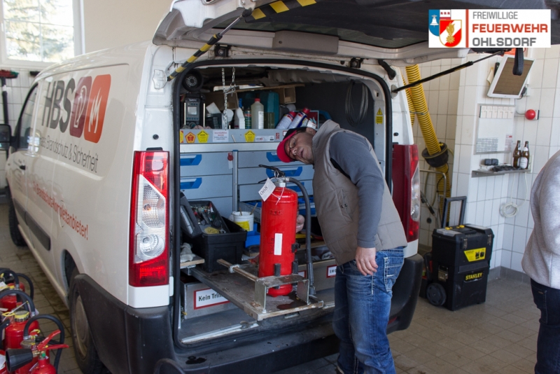 Zahlreiche Feuerlöscher gab es durch die Fachfirma „HBS – Haas Brandschutz und Sicherheit“ zu überprüfen. Wie bereits in den letzten Jahren, wurden die Feuerlöscher katalogisiert. Somit konnten wir erstmalig die Nachhaltigkeit der Pflicht überprüfen. Knapp 10% waren es nur, welche nach der Überprüfung 2015 den 2 Jahres Intervall einhielten. Dennoch gab es genügend zu tun, da wiederum sehr viele Löscher gebracht wurden und so ein neuer Rekord an Überprüfungen zustande kam. Diese Feuerlöscher wurden wieder auf „Herz und Nieren“ geprüft. Wie immer stand auch der Chef der Firma HBS selbst in der Fahrzeughalle und überprüfte die Löscher. Neben der Überprüfung wurden auch Brandschutzartikel wie Rauchmelder bzw. Löschdecken zur Vorsorge verkauft. Bereits seit mehr als einem Jahrzehnt arbeitet die Feuerwehr Ohlsdorf mit der Firma HBS zusammen.