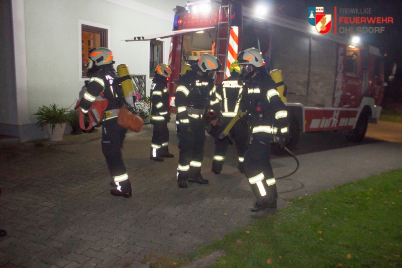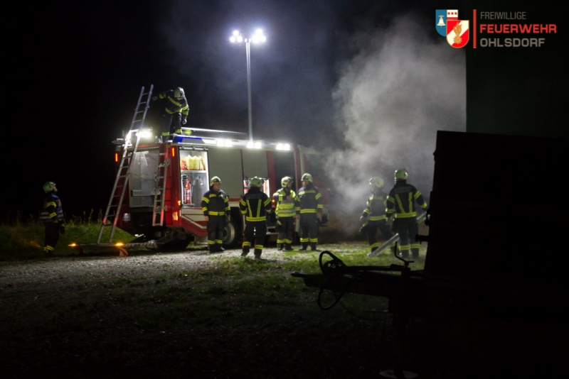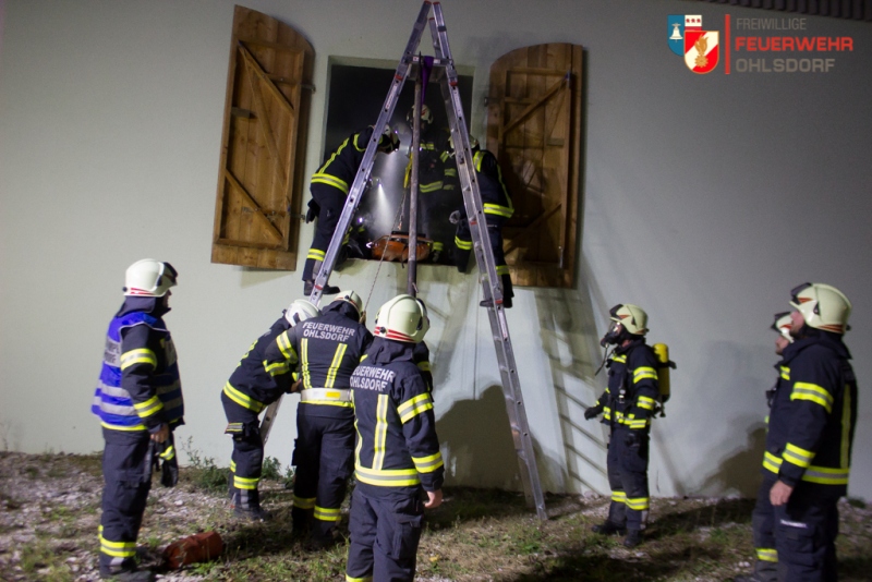 Ein Brand in einem landwirtschaftlichen Anwesen in Traich mit fünf vermissten Personen. Das bedeutete viel Arbeit für die 26 Mann starke Einsatztruppe der Feuerwehr Ohlsdorf, bei der wöchentlichen Übung am Donnerstag, 03. Oktober 2019. Übungsobjekt war der Hof der Familie Kreutzer in Traich.