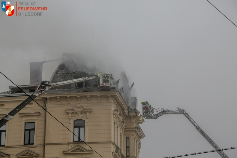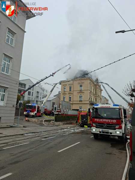 Ein großer Dachbrand brach am Donnerstag, 06. November 2025 gegen 3 Uhr nachts in Gmunden am Dach eines Mehrstöckigen Gebäudes auf der Esplanade aus.