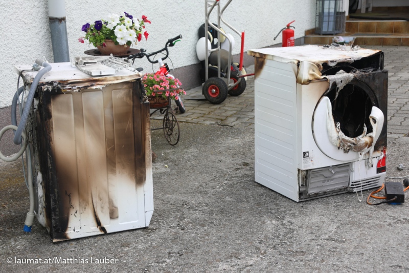 Die Einsatzkräfte wurden zu einem Wohnhausbrand alarmiert. Beim Eintreffen am Einsatzort zeigte sich, dass ein Wäschetrockner in Brand geraten war. Das Feuer griff bereits auf eine Waschmaschine über. Die Einsatzkräfte der Feuerwehren konnten den Brand rasch unter Kontrolle bringen.