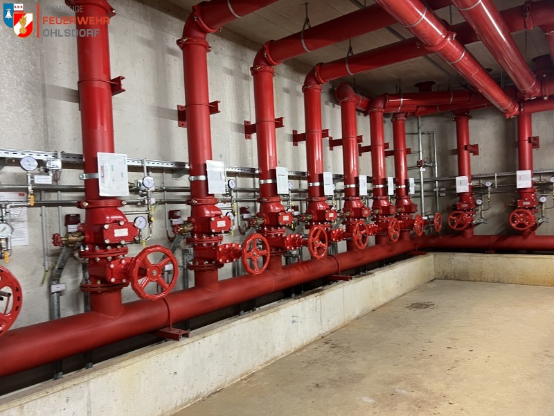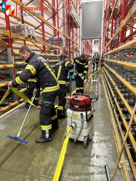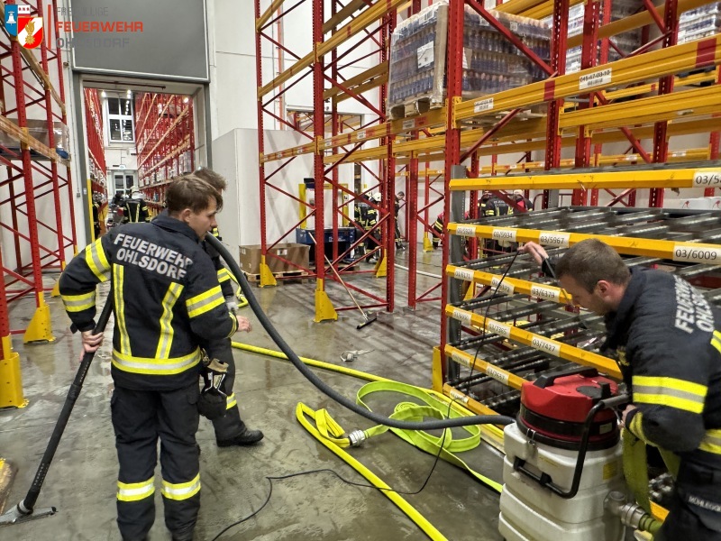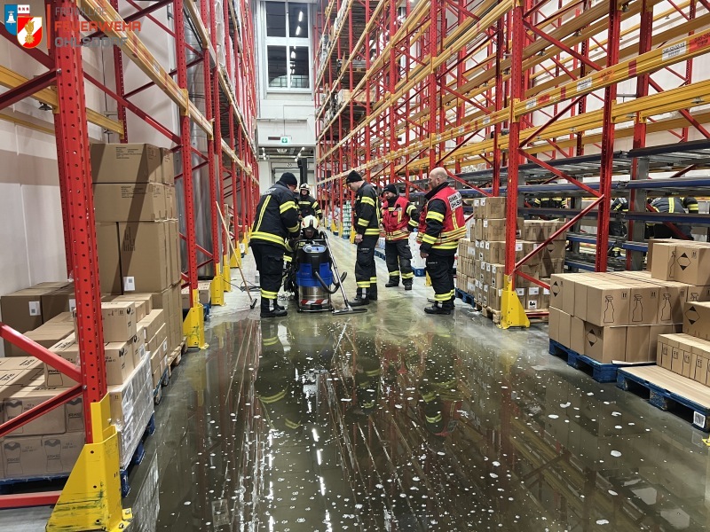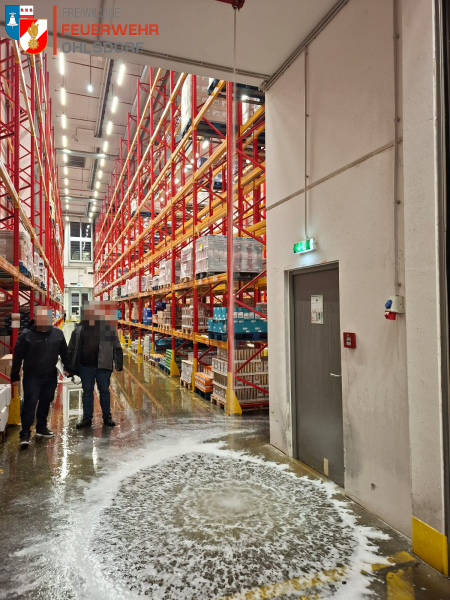 Nach rund 2,5 Stunden war der Einsatz der Feuerwehren beendet. Die weiteren Arbeiten an der Sprinklerleitung übernahm der Werksinterne Brandschutz.