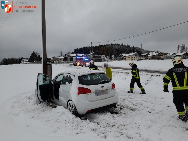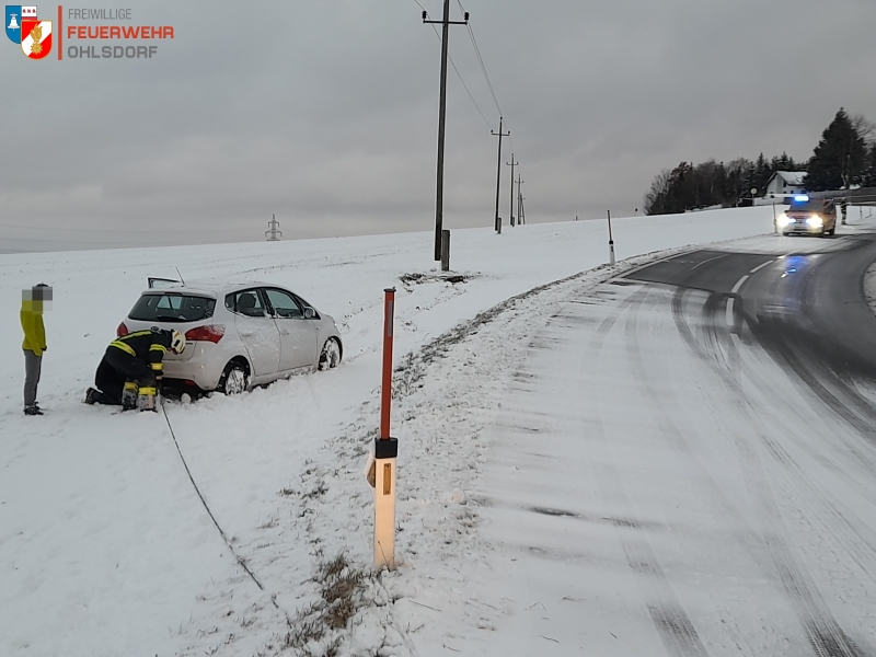 Ohlsdorf: Aus unbekannter Ursache kam ein PKW Lenker bei winterlichen Verhältnissen von der Fahrbahn ab und blieb in einem Feld im Schnee stecken.