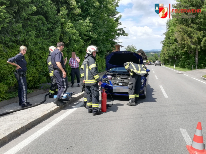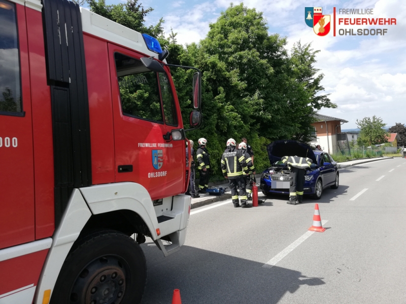 Ein Fahrzeuglenker bemerkte nach kurzer Fahrt das Rauch aus dem Motorraum aufstieg. Auch ein nachfolgender Lenker (ein Mitglied der FF Ohlsdorf) sah dies und alarmierte die Feuerwehr. Am Einsatzort wurde das Fahrzeug mittels Wärmebildkamera kontrolliert. Das Fahrzeug, welches erst wenige Tage alt war, dürfte einen technischen Defekt erlitten haben. Der Rauch wurde während des Einsatzes immer weniger. Löschmittel wurden daher nicht verwendet, um auch keine weitere Schäden am Neuwagen zu verursachen. Um den Verkehr von der Landesstraße nicht weiter zu blockieren, wurde der PKW seitlich in einer Ausfahrt abgestellt. Der Besitzer sowie die Polizei verblieben am Einsatzort, bis zum eintreffen des Abschleppdienstes.