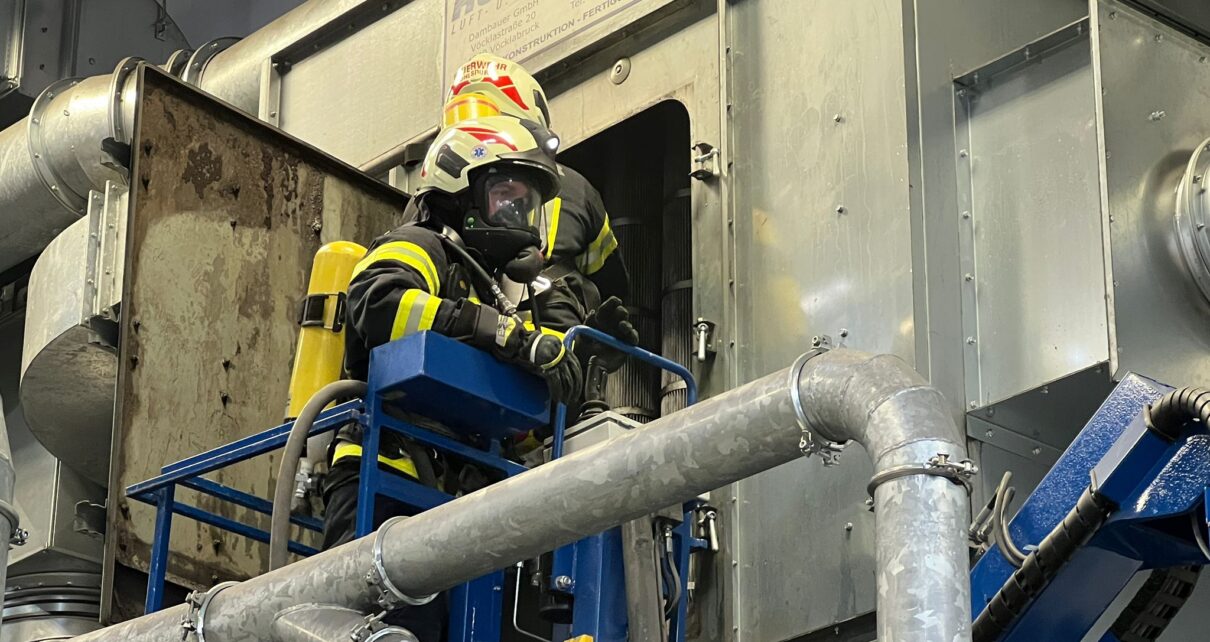 In einem Industriebetrieb kam es erneut in einer Filteranlage zu einem Brand. Die Brandschutzwarte konnten durch den raschen Einsatz eine Ausbreitung verhindern. Mit schwerem Atemschutz konnten die Einsatzkräfte den Brand fertig ablöschen und die Anlage bzw. die Filter ausbauen.