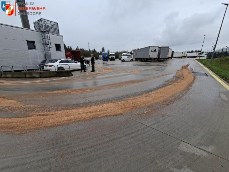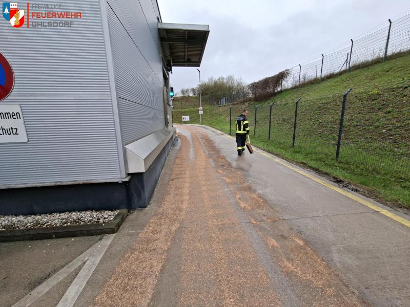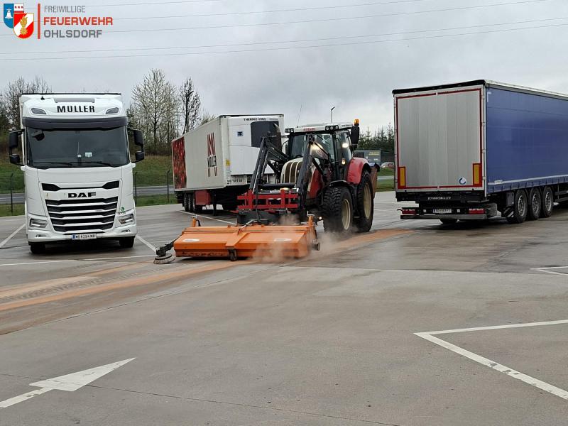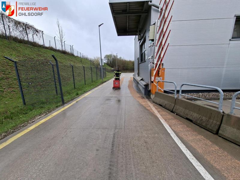 Am 15.04.2026 wurde die Feuerwehr Ohlsdorf um 07:45 Uhr von der Betriebsleitung des REWE- Lagers in Ehrenfeld zu einer Ölspur am LKW- Parkplatz alarmiert.